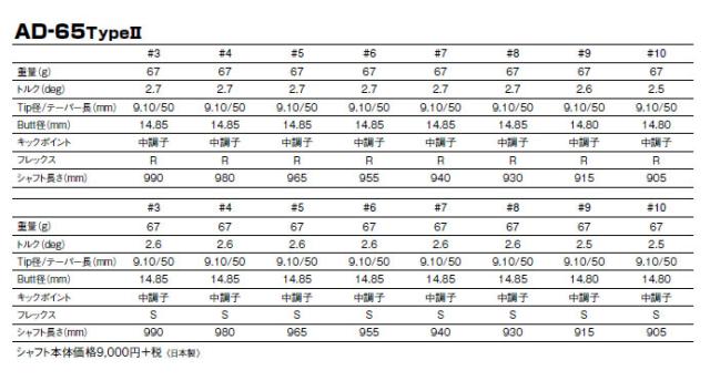 タイトリスト ユーティリティー スリーブ装着シャフト グラファイトデザイン Tour AD AD65-Type2ADアイアン軽量モデル打ちやすく振りぬきやすく高弾道でピンを狙える。幅広いプレイヤーが使いこなせ飛距離、方向性を 向上させた軽量アイアン専用カーボンシャフト