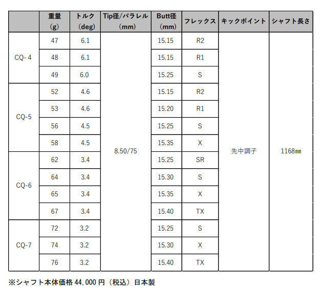 テーラーメイド スリーブ装着シャフト Qi35 Qi10 ステルス2 ステルス SIM2 SIM M グラファイトデザイン ツアーAD CQシリーズ Tour AD WOOD GRAPHITE DESIGNSTEALTH2 ステルス2 / ステルス2 プラス / ステルス2 HD / ステルス グローレプラス GROIRE / ステルス / ステルス プラス / ステルス HD / SIM2 / SIM2 MAX / SIM2 MAX TYPE-D / SIM / SIM MAX / SIM MAX TYPE-D / M6 / M5 / M4 / M3 / M2 / M1 / M5ツアー M5 TOUR / オリジナルワンミニドライバー ORIGINAL ONE MINI 275cc / 300ミニドライバー 307ccステルス2 プラス FW / ステルス プラス FW / SIM2 FW / SIM FW / M5 FW / M3 FW / M1 FW 2022年10月7日発売先調子系でつかまる、 「飛び」の次世代モデルムチのようなしなり、インパクトへの加速感をイメージした、つかまりの良いモデル。手元の剛性を高めながら全体の剛性にメリハリをつけることで、切り返しやすくインパクト前後のスピード感UPを狙っています。軽やかな走り感と力強い高弾道で、戦略的なショットを可能にします。40g台から70g台をランアップ。60、70g台にはTXフレックスを追加。