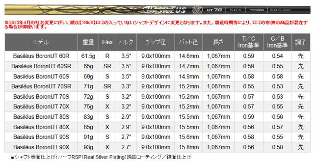 手元のしなり感の指標となるC/B値は0.56、また先端のしなりの指標となるT/C値 は0.55(80/S)と、ユーティリティーに求められる球の上がり、飛距離性能を追求した設計になっています。