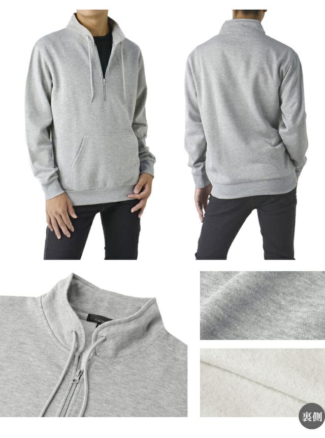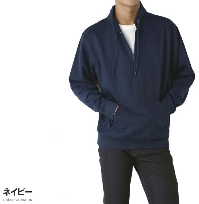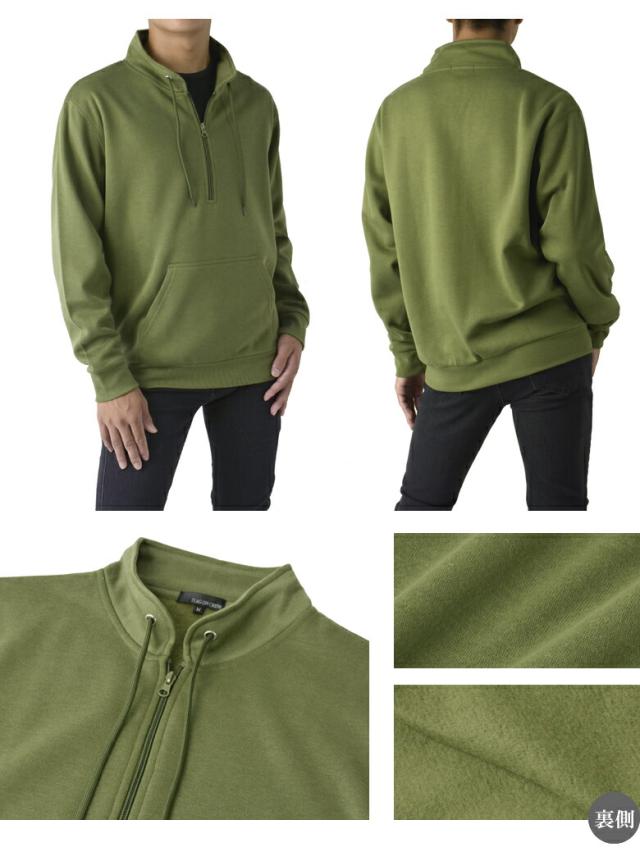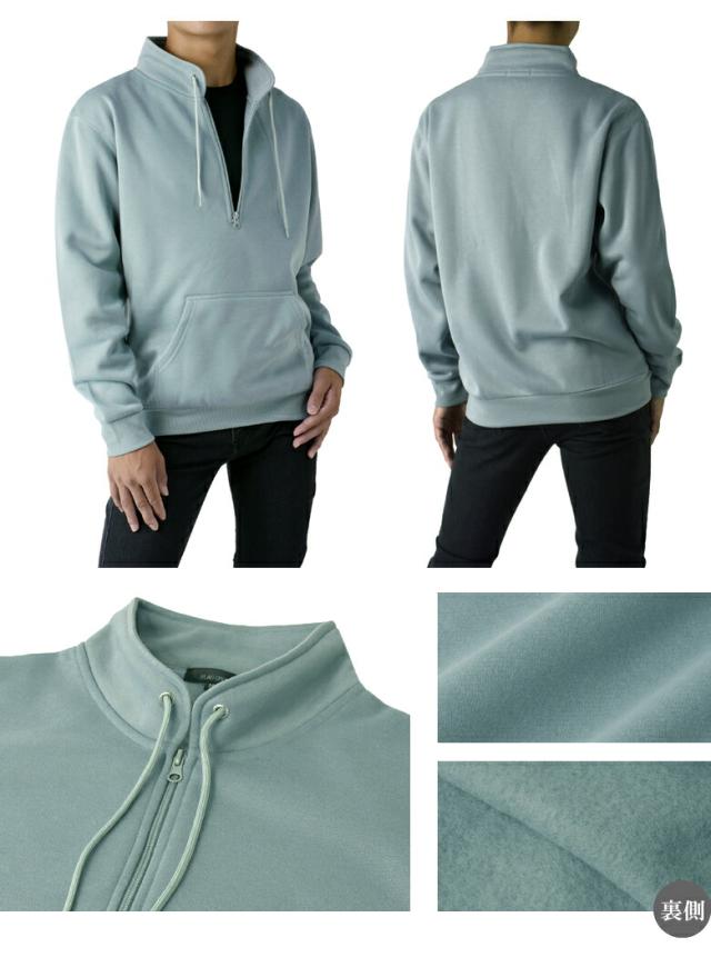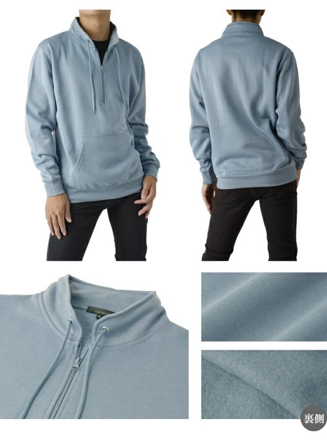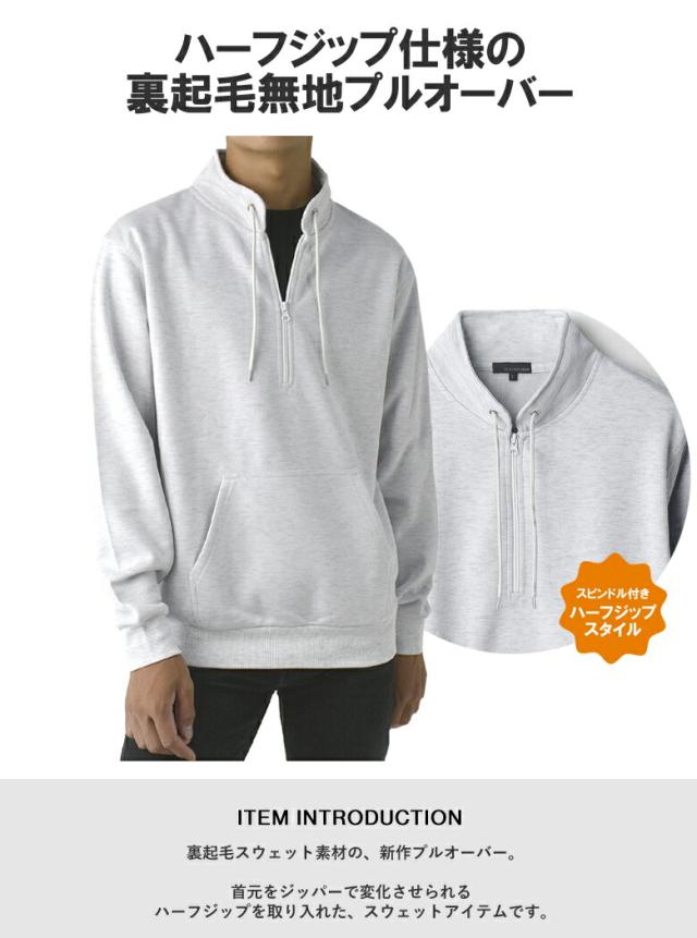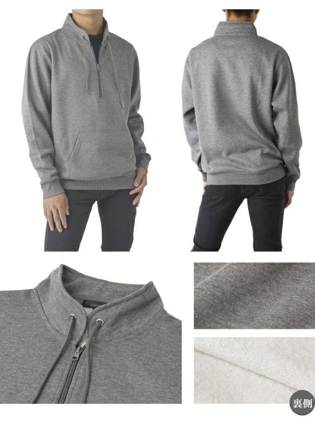 送料無料☆ハーフジップ仕様の裏起毛無地プルオーバーです。