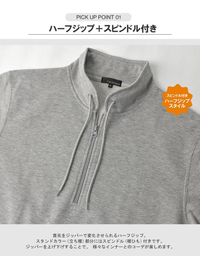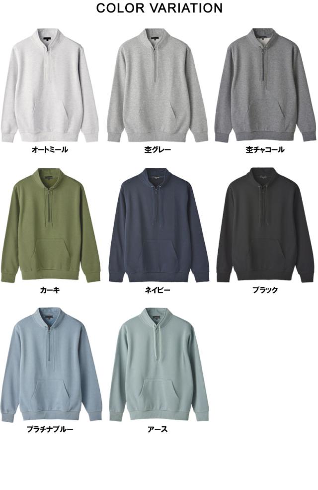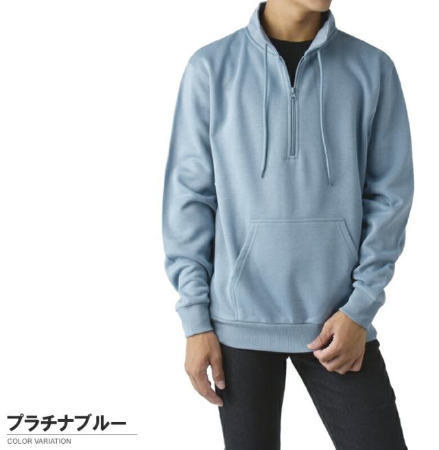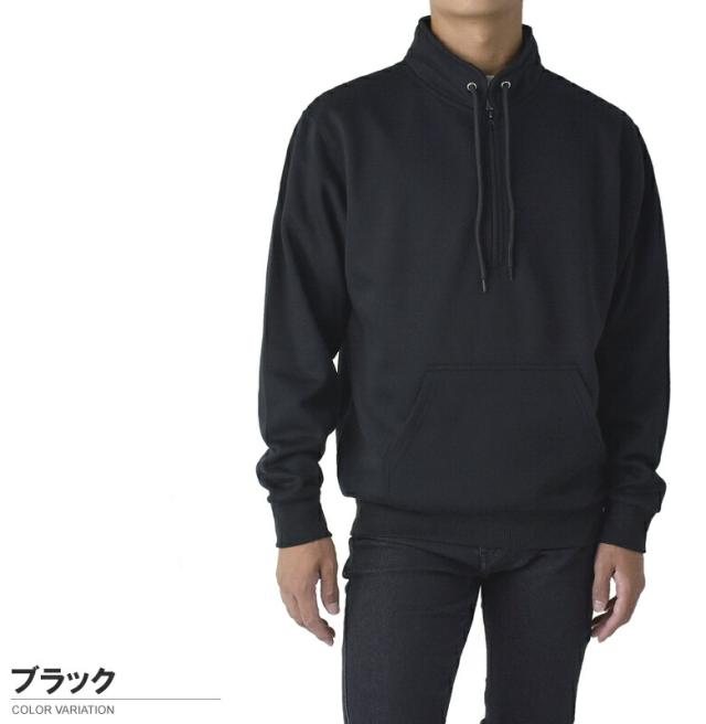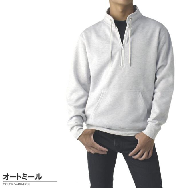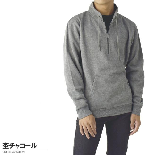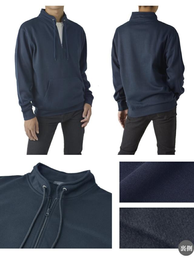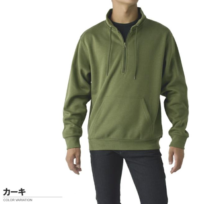 送料無料☆ハーフジップ仕様の裏起毛無地プルオーバーです。