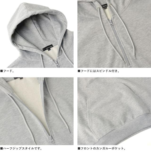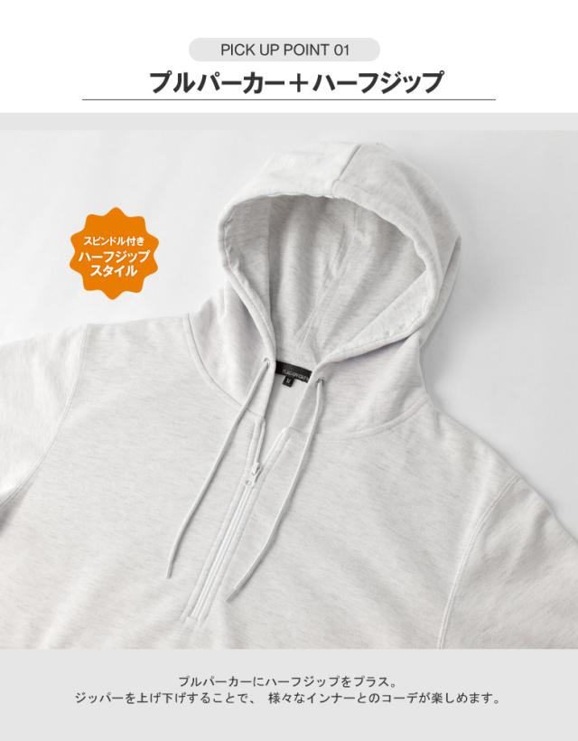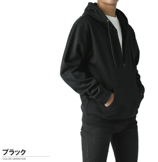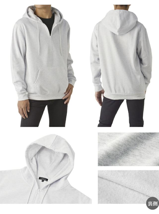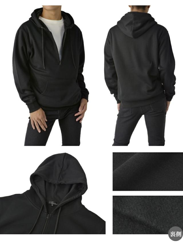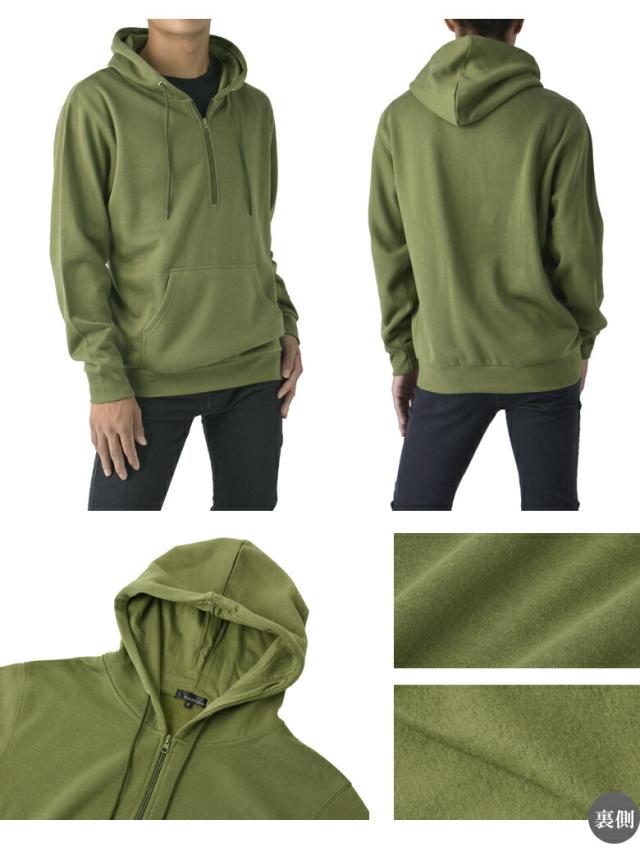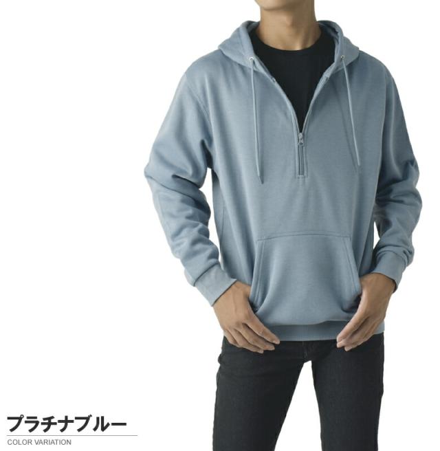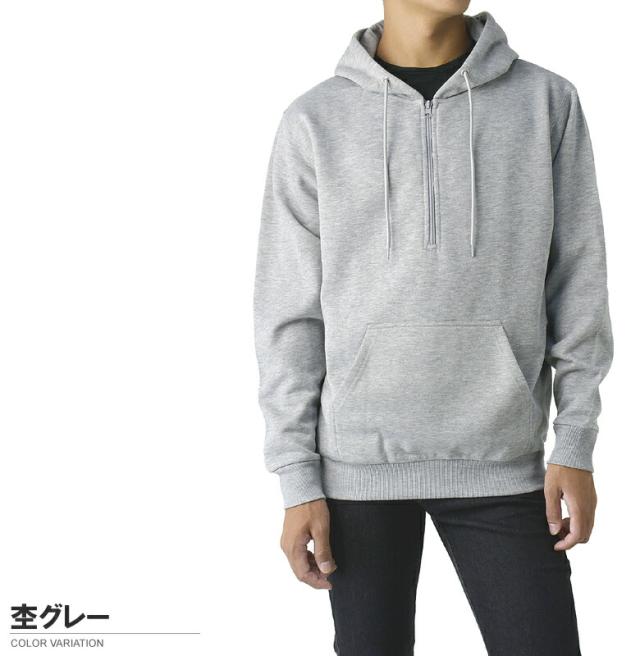送料無料☆ハーフジップ仕様の裏起毛無地プルパーカーです。