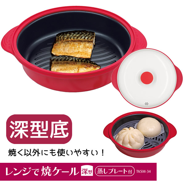 レンジで焼ケール 深型 TKSM-34 (送料無料) 電子レンジ 調理器具 電子レンジ用調理器 深型 レンジで焼けーる お肉 目玉焼き 餃子 焼き目 蒸し器 蒸し料理 人気 調理器具 キッチン アイテム