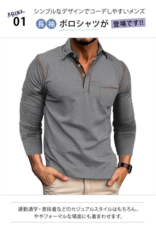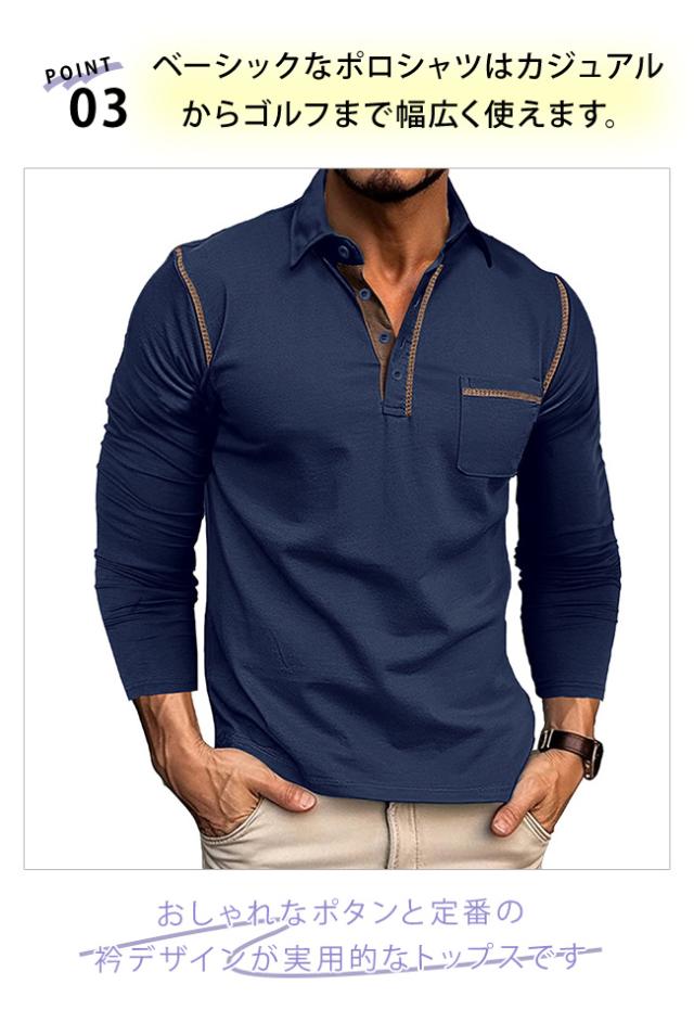 長袖 ポロシャツ メンズ スポーツポロシャツ 通気 ゴルフウェア アウトドアウェア 日常着 速乾 カジュアル ポケット付き 春秋服