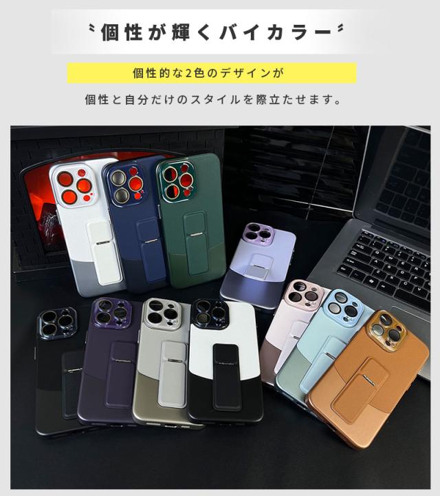 スマホケース iPhone 15ケース iPhone 15 Plusケース iPhone15 proケース iPhone 15 Pro Max ケース バイカラー iphone15カバー キックスタンド 縦横両対応 アイフォン15 プロケース 大人 可愛い レンズ保護 iPhone15 pro カバー 滑り防止