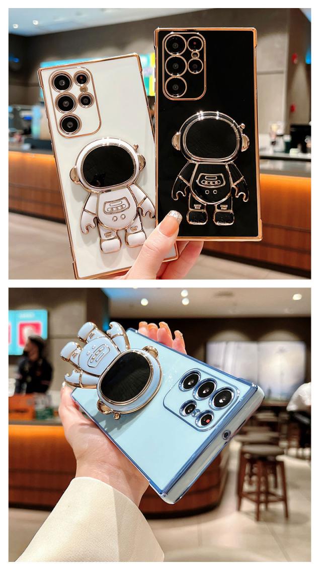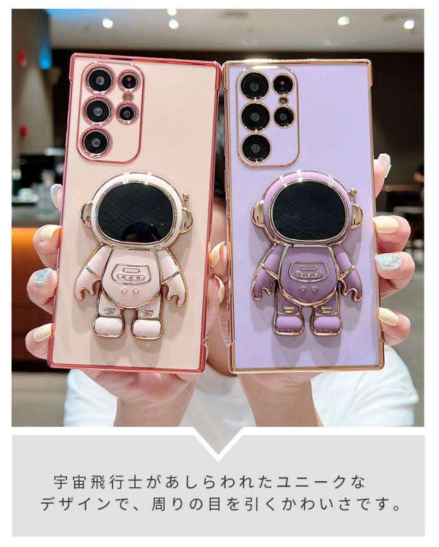 スマホケース Galaxy a55 5Gケース Galaxy S24 Ultra Galaxy A55 5G A54 5G A53 5G A52 S23 FE ギャラクシー S23 ケース S23 Ultra S22 S22 Ultra S21 S21 Ultra カバー 立体 耐衝撃 galaxy S24カバー ソフトケース 宇宙飛行士 かわいい 可愛い ストラップホール 背面カバー メッキ加工