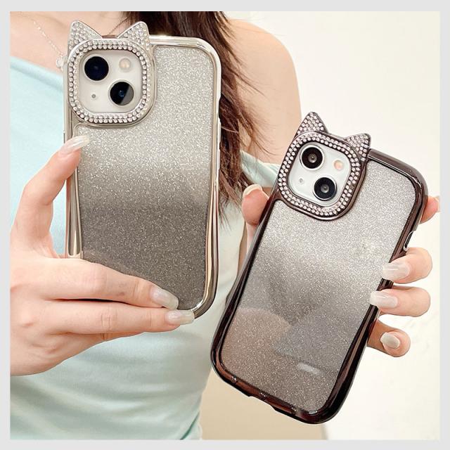?かわいい猫耳が付いたTPU背面ケース。