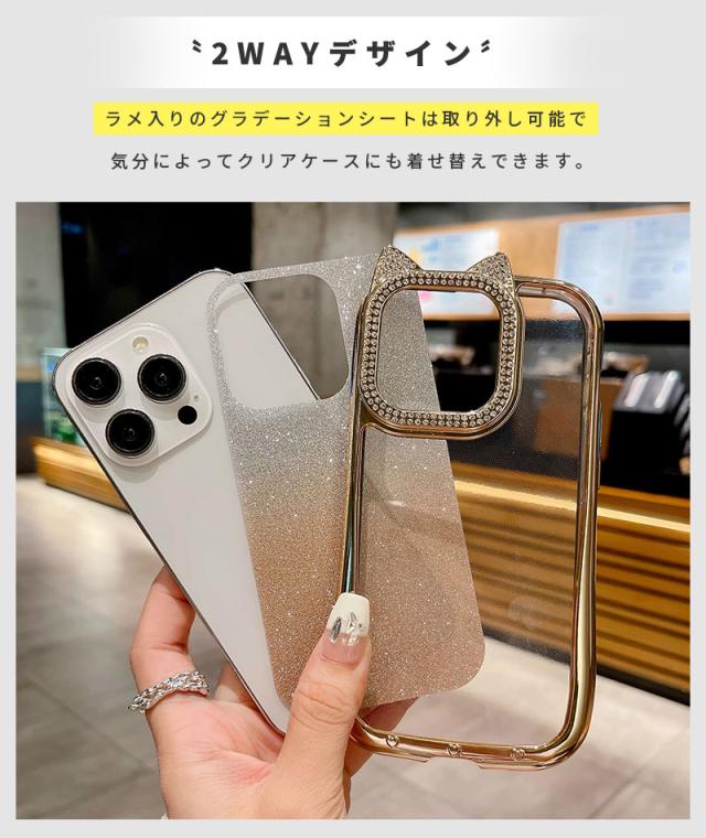 ねこみみ 猫耳 アイフォン15ケース アイフォン14ケース iPhone 15pro Maxケース iPhone 15 Proケース スマホケース クリアケース 2WAY シンプル iPhone 14 pro ケース 背面透明 iphone 14 Pro Maxカバー グラデーション アイフォン15