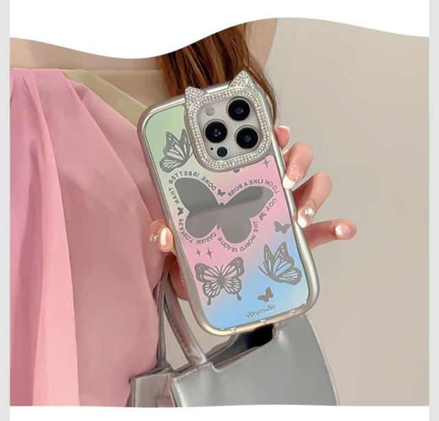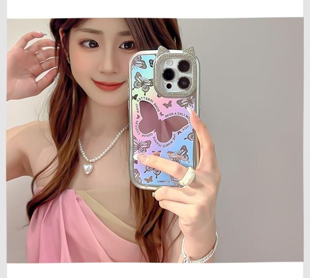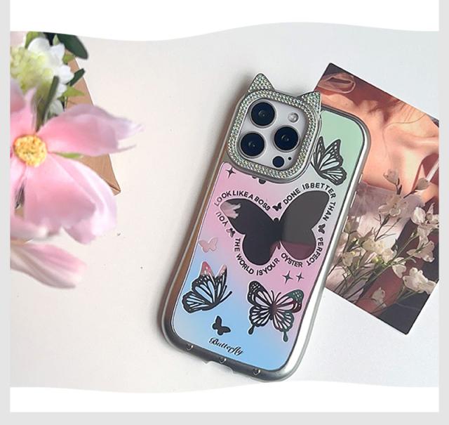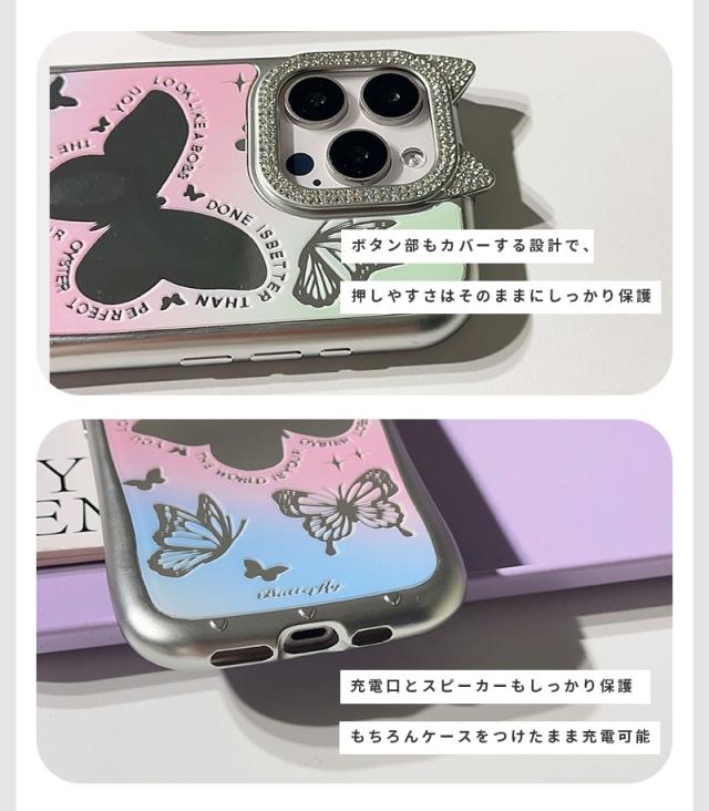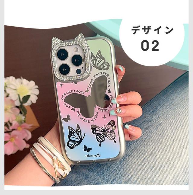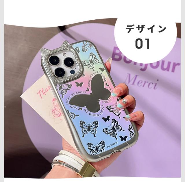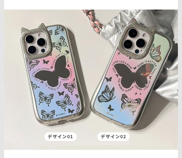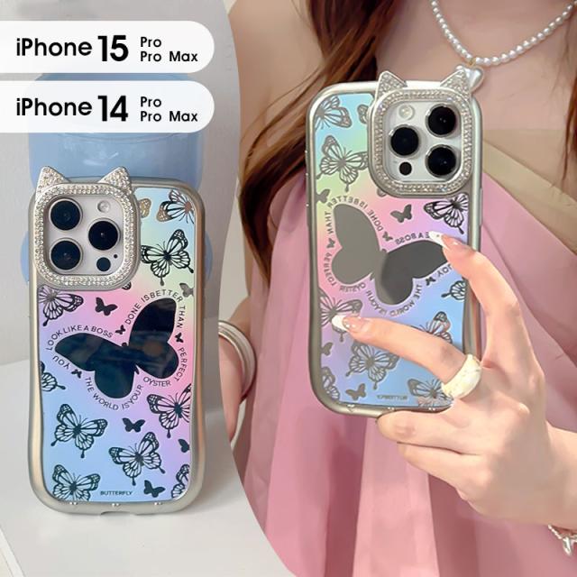iPhone 15ケース iPhone 14ケース iPhone 15pro Maxケース iPhone 15 Proケース スマホケース 猫耳 ネコミミ iPhone 14 pro ケース キラキラ iphone 14 Pro Maxカバー かわいい アイフォン15 プロマックスケース ねこみみ 蝶 鏡面加工