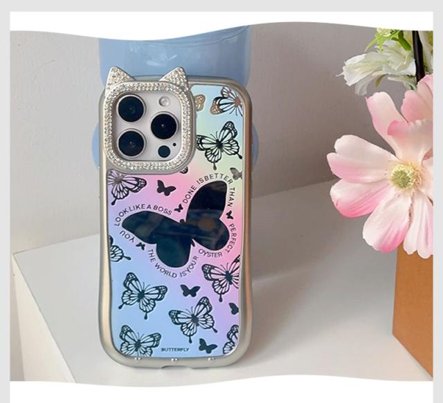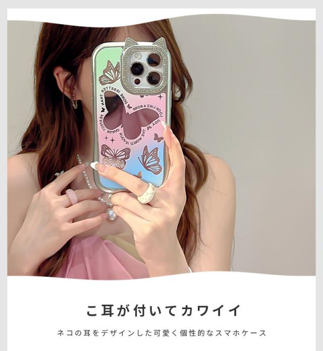 iPhone 15ケース iPhone 14ケース iPhone 15pro Maxケース iPhone 15 Proケース スマホケース 猫耳 ネコミミ iPhone 14 pro ケース キラキラ iphone 14 Pro Maxカバー かわいい アイフォン15 プロマックスケース ねこみみ 蝶 鏡面加工 おしゃれ 耐衝撃 虹色 オーロラ