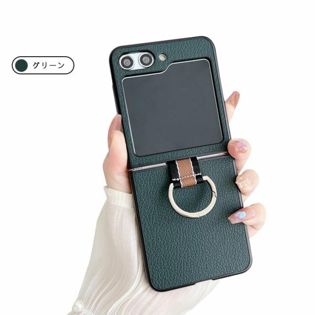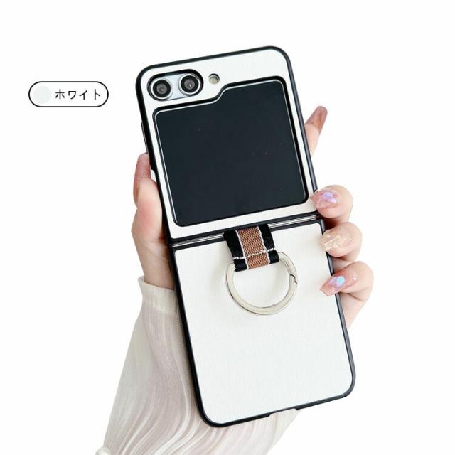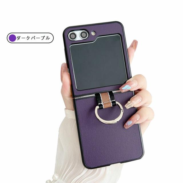 Galaxy Z Flip6 ケース / カバー 折りたたみ型 片手持ちに便利なリング付き PUレザー ケース スタンド機能 Samsung ギャラクシー Z フリップ6 アンドロイド スマートフォン/スマホケース/カバー