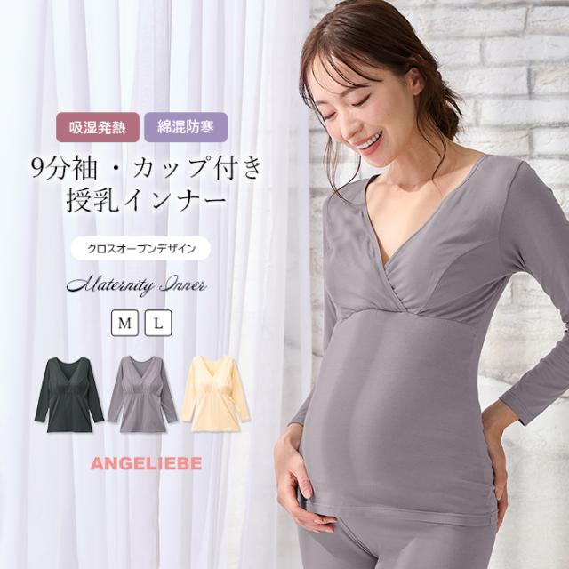 マタニティ 授乳インナー キャミソール 吸湿発熱 綿混防寒9分袖 クロスオープン マタニティ・授乳インナー 肌着 妊婦 インナー 下着 ANGELIEBE エンジェリーベ