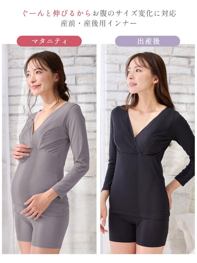 吸湿発熱 綿混防寒9分袖マタニティ・授乳インナー