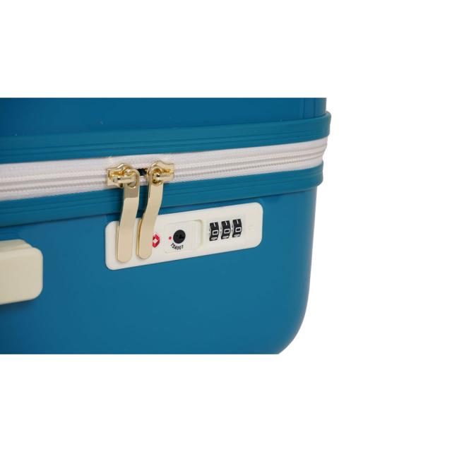 正面の金色のロゴがアクセントとなり目を引きます。ボディ素材には耐久性に優れるポリカーボネートとABSの混合素材を使用。