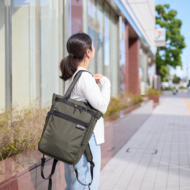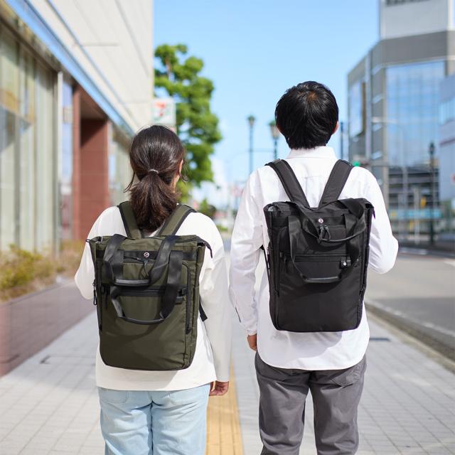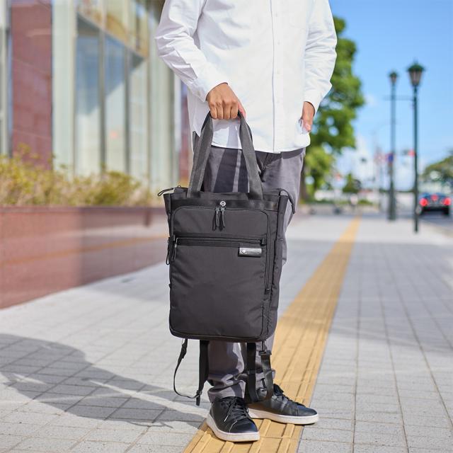 トートバッグとリュックの2WAYで使用できるカジュアルなビジネスバッグ。