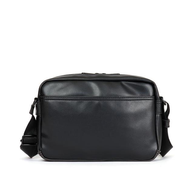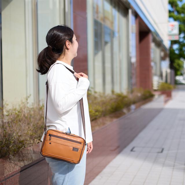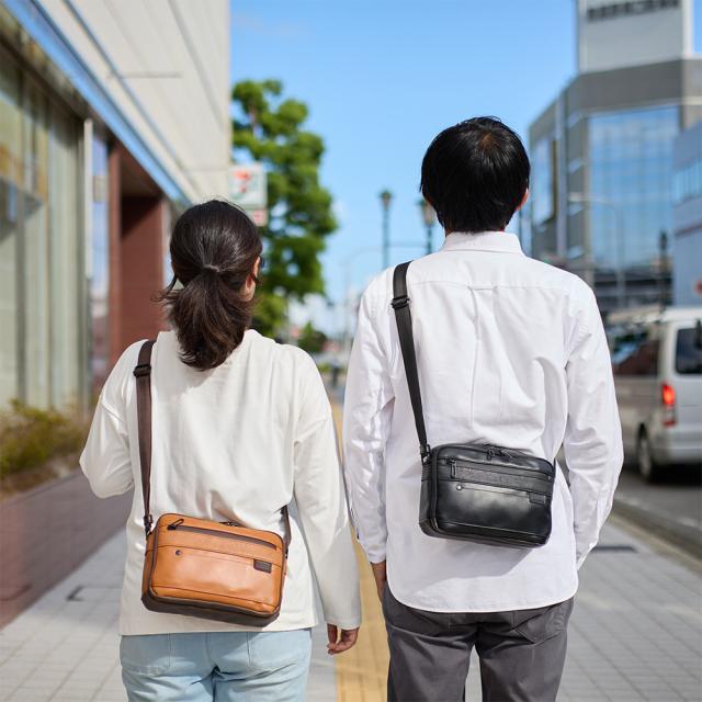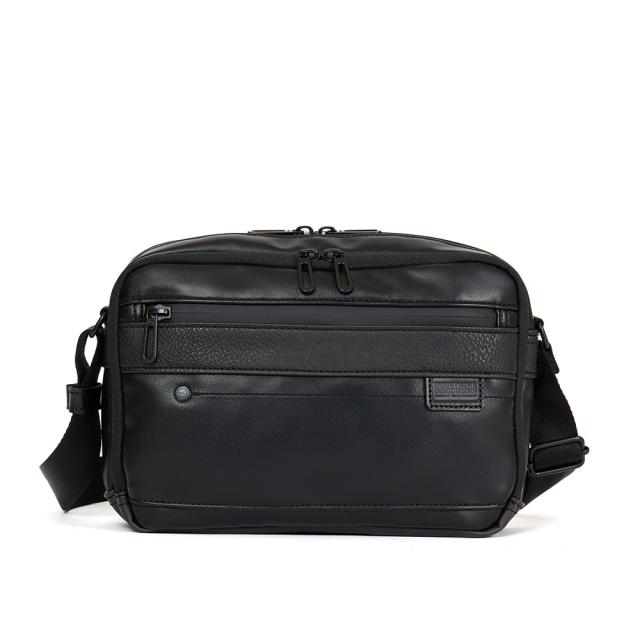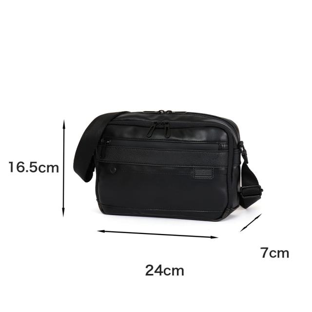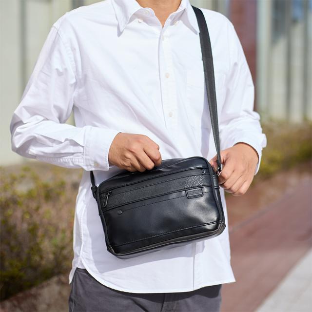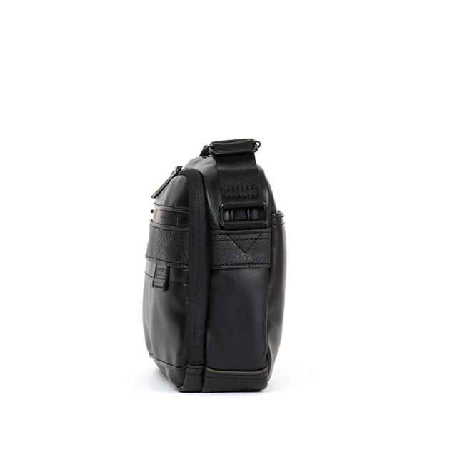 ・上品なスムースとシボ感のある表情の違う合皮コンビをワンカラーで統一したシンプルでコーディネートしやすいコンパクトサイズのショルダーバッグです。