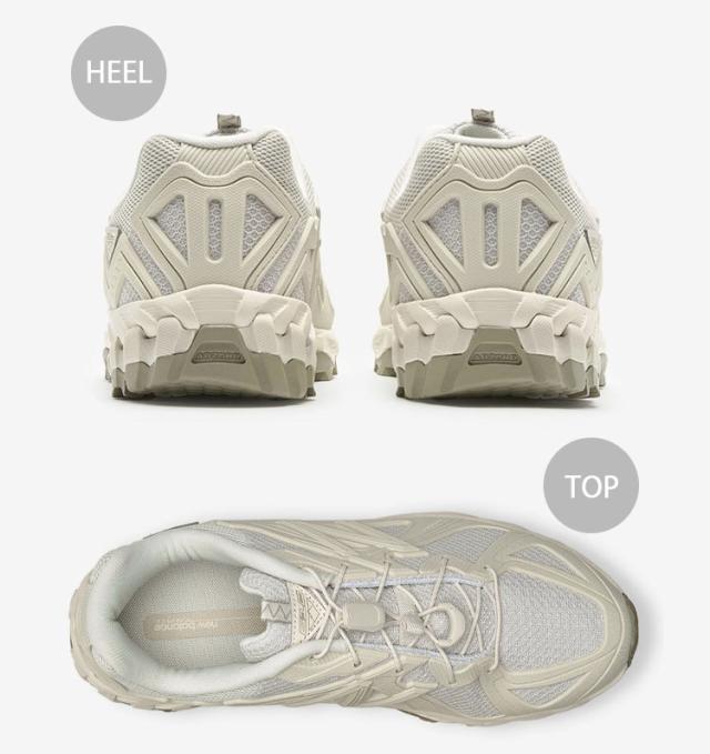 アクティブなシーンでも使いやすいよう、アッパーにモールデットラバーと着脱しやすいドローコードを採用しました。