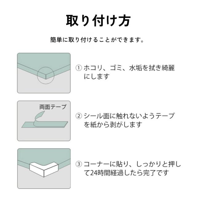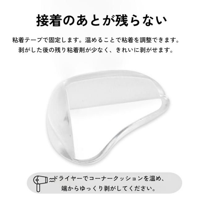 【跡が残らない接着剤】: 強力な接着剤でコーナーガード 透明をしっかりと固定します。 コーナークッションをはがしたいときは、ぬるま湯でふき取りを繰り返すだけで、残った接着剤を簡単に取り除くことができます。