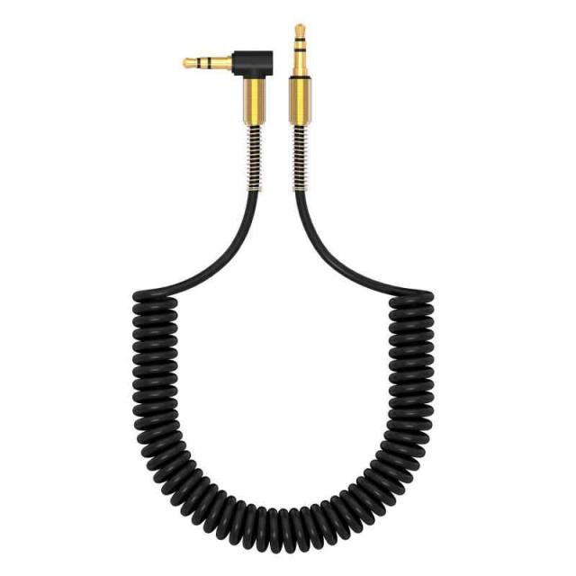 AXYO オーディオケーブル 3.5mm AUXケーブル 片側 L型 カールコード式 ステレオミニプラグ 約1m 長く伸びるカールケーブル ヘッドホン/iPhone/iPad/Android/スピーカー/車 等 対応 (1メートル, ブラック)