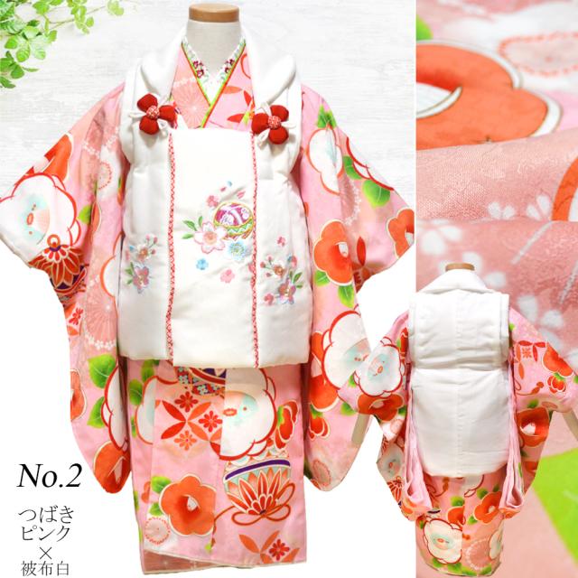 【レンタル】 七五三 着物 3歳 被布 セット 2(光琳椿ピンク・白) 【 被布セット 三歳 雛祭り 御祝い 三歳 3歳 三才 3才 女の子 子供