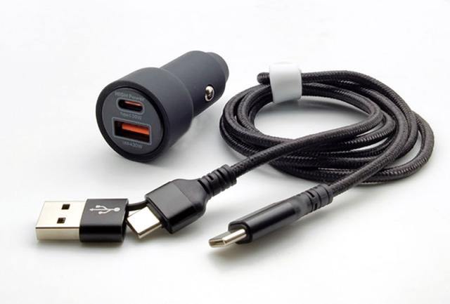 DC2ポート充電器 C+A 編込みケーブル付 DC12/24V スマホ充電 PD QC 同時使用時60W タブレットも対応 アークス X-333