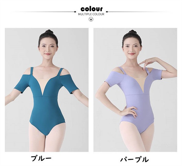バレエレオタード レディース バレエ用品 レッスン着 練習着 バレリーナ ダンス衣装 パッド付き 袖あり ラウンドネック ユニフォーム