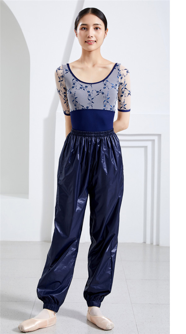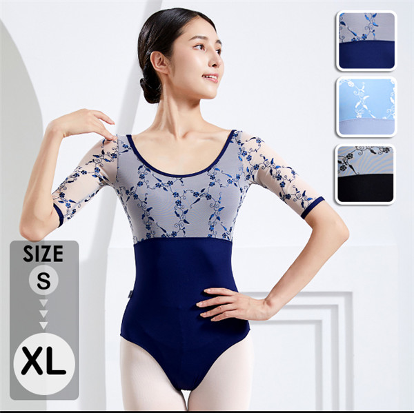 バレエ 衣装 レオタード コスチューム ブルー ネイビー ブラック バレエ用品 バレエレオタード 大人用 丸ネック 袖あり パット付き