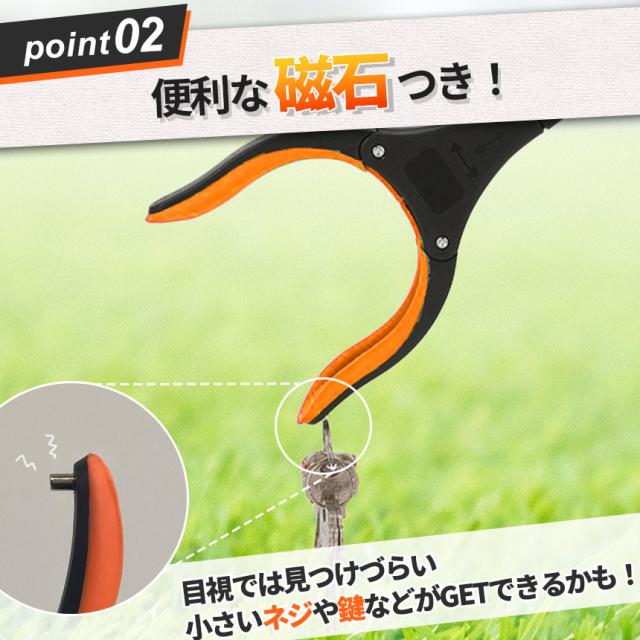 ●ガッチリ掴める●ペットボトルや缶など大きめの物から紙類・タバコ・落ち葉など小さい物もしっかり掴めます!・怪我や病気で入院の際にベッドの上から動かず物を取りたい・ご高齢や身体の不自由がありかがまずに物を取りたい・洗濯機の裏や下など、手の届かない隙間に落ちてしまった物を取りたい・高いところの物を取りたい・ゴミ拾いのためにロングなトングが欲しいという方におすすめ!様々な用途で使えます!
