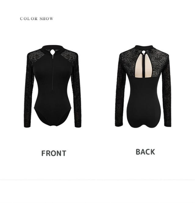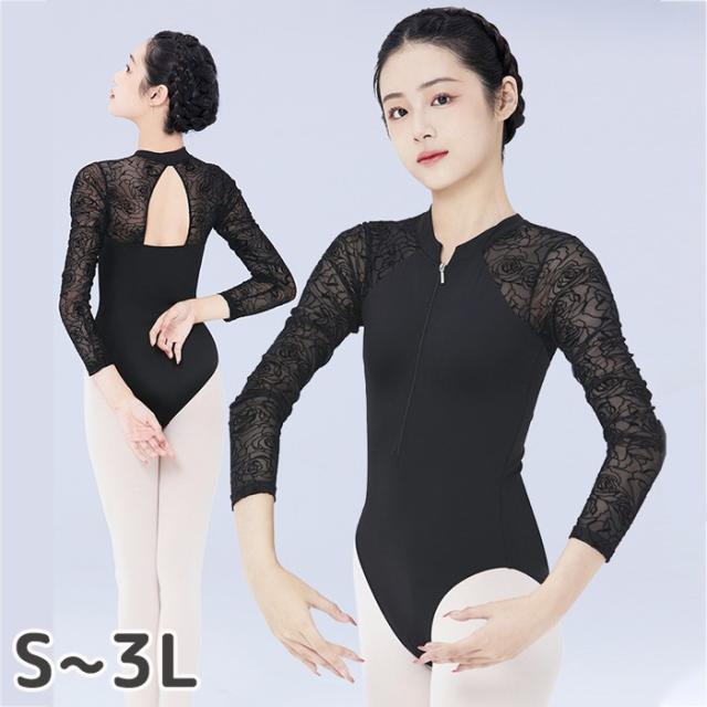 バレエ レオタード 大人 レディース ジュニア 長袖 フロントジップ ジッパー ファスナー オープンバッグ 伸縮性 ストレッチ 通気性