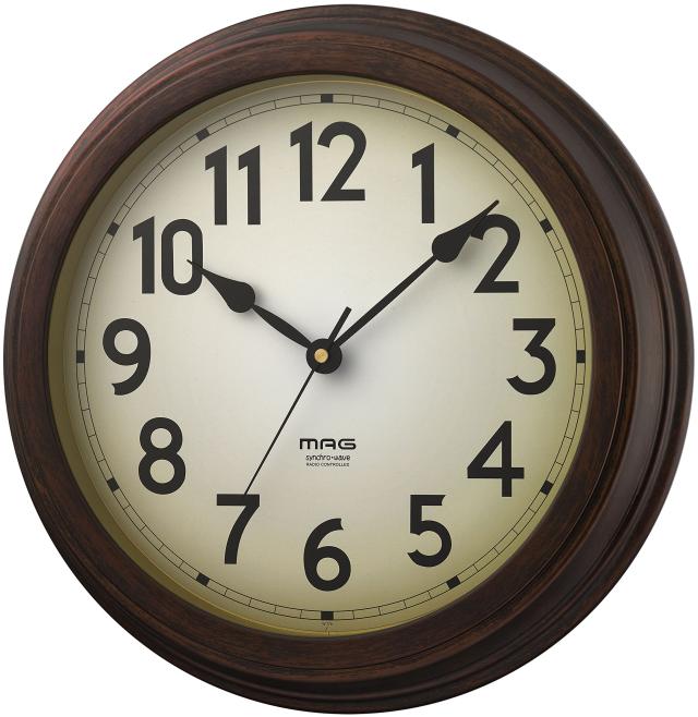 ◆商品名:MAG(マグ) 掛け時計 壁掛け時計 電波時計 直径35.5? アナログ 大正館 静音 連続秒針 木目調 ブラウン W-778BR-Z