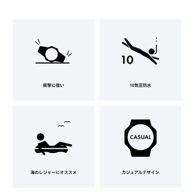 機能面では、耐衝撃構造や着けたままで水泳もできる防水機能など頼れる機能を搭載しています。