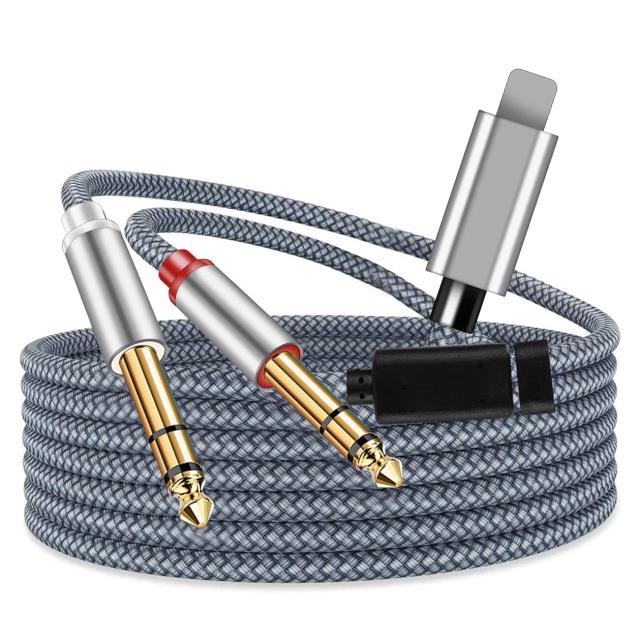 ライトニング to 6.35mm*2 オーディオ変換ケーブル i-phone変換ステレオ プラグ6.35mm 2分配ケーブル オス-オス 高耐久性ナイロン編み HI