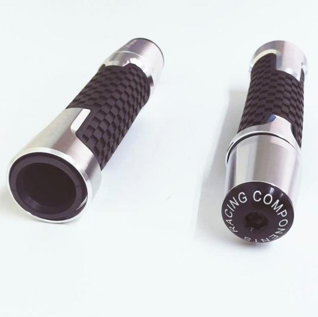 【商品説明】 Vmax専用のグリップ・バーエンドのセットになります。 1700の純正ハンドルにはバーエンドの取り付け未確認です。 画像からご判断願います。 アルミ地のグリップは重厚感もあり、Vmaxのホワイトプリントも映えます。 バーエンドはウエイトタイプになります。