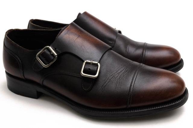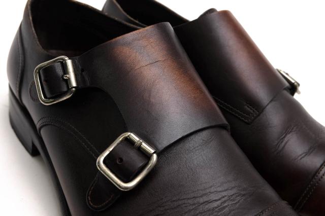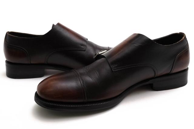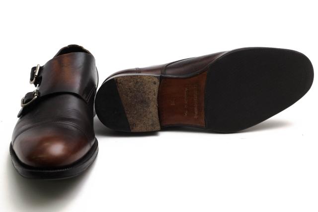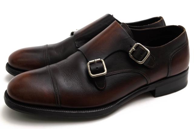 ◆特徴 アンティーク加工 ストレートチップ ダブルモンクストラップ レザーソール