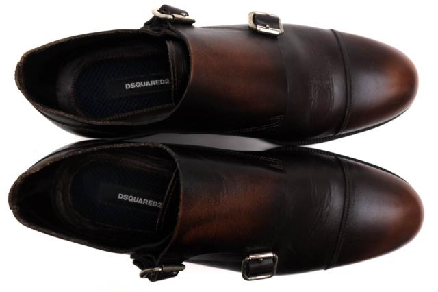 ○ディースクエアード DSQUARED2 牛革 カーフ ビジネスシューズ アンティーク加工 ストレートチップ ダブルモンクストラップ レザ 中古