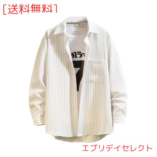 [Bligo] 長袖 ストライプ シャツ メンズ 綿 ボタンダウン ワイシャツ 大きいサイズ カジュアル コート ポケット 形状記憶 ゆったり かっ