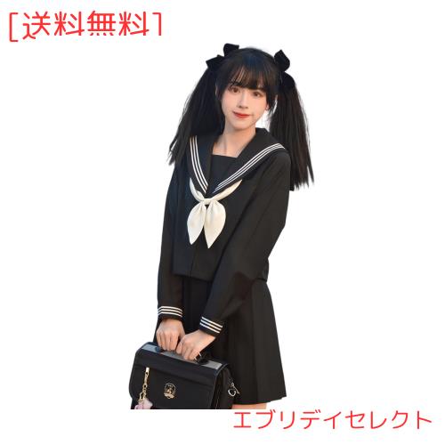 [YAISHN] セーラー服 本格制服 黒 白 三本線 長袖 コスプレ 制服 プリーツスカート ハロウィン 仮装 上下セット 女子制服 JK 高校生 清楚