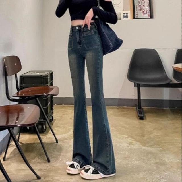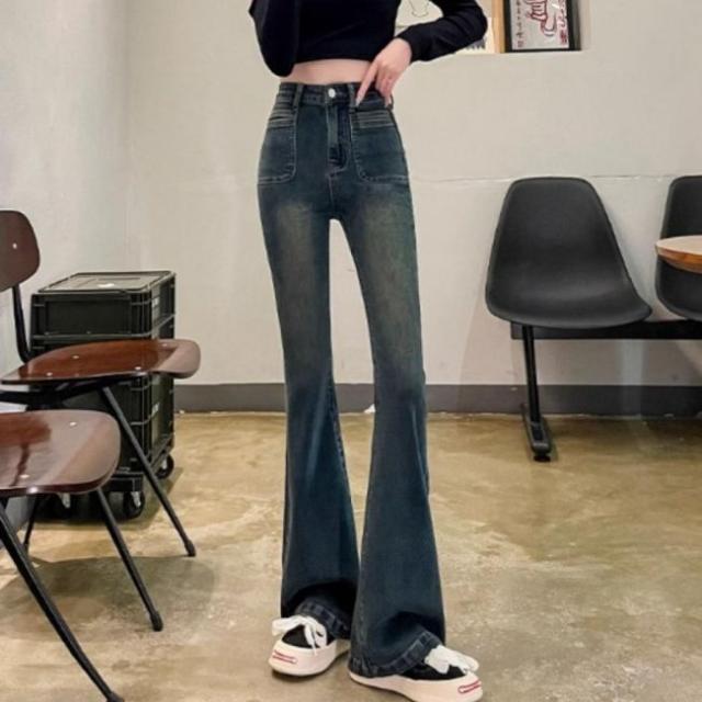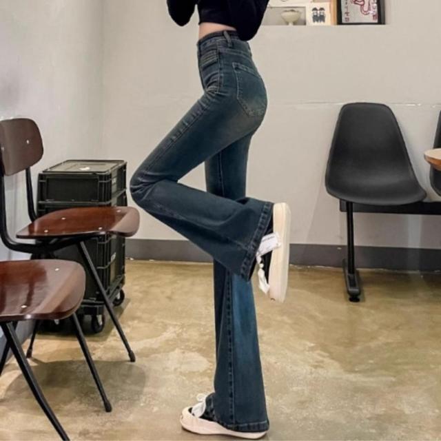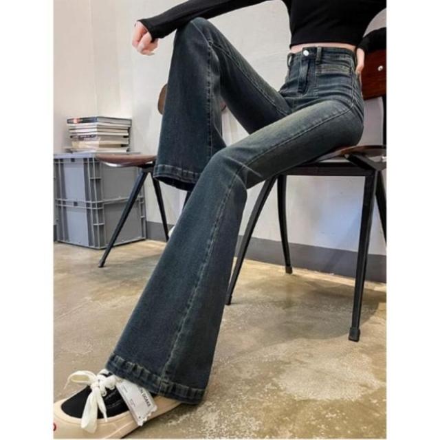デニムパンツ レディース フレアパンツ ワイド 韓国ファッション ストレッチ ジーンズ ハイウエスト 大きいサイズ
