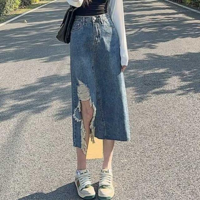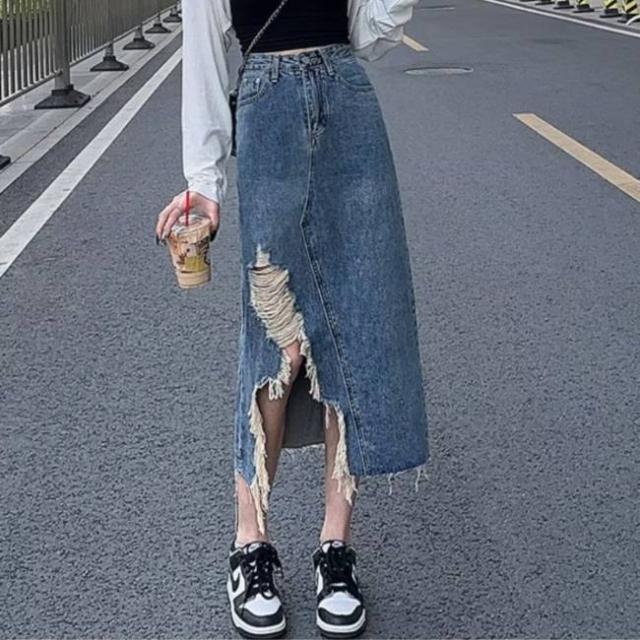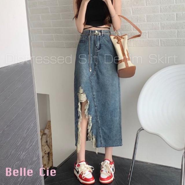 デニム スカート デニムスカート タイトスカート ダメージ加工 レディース 韓国ファッション ダメージ クラッシュ スリット カジュアル セクシー