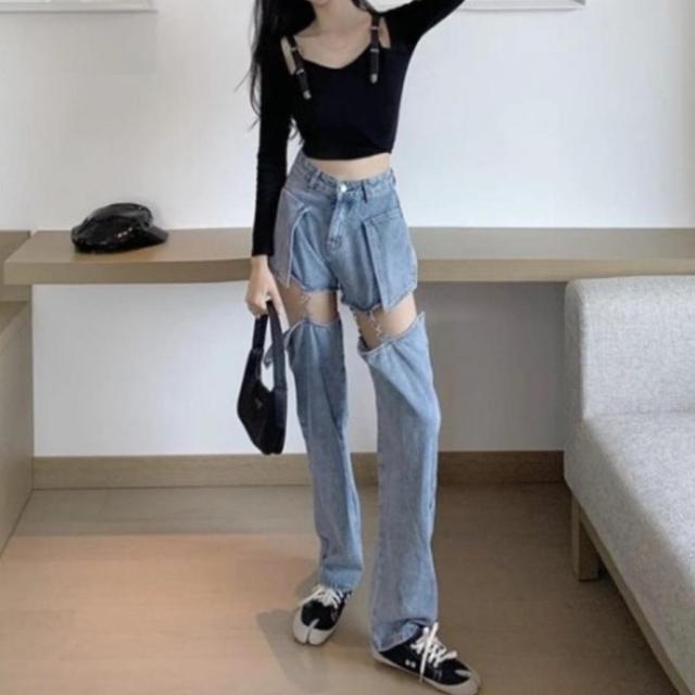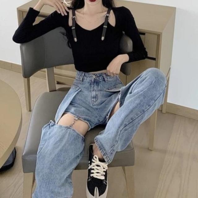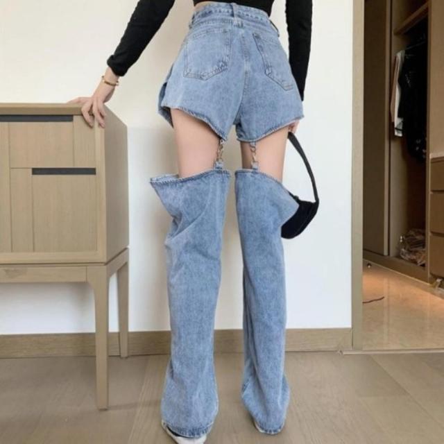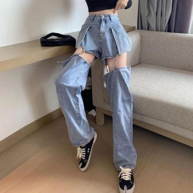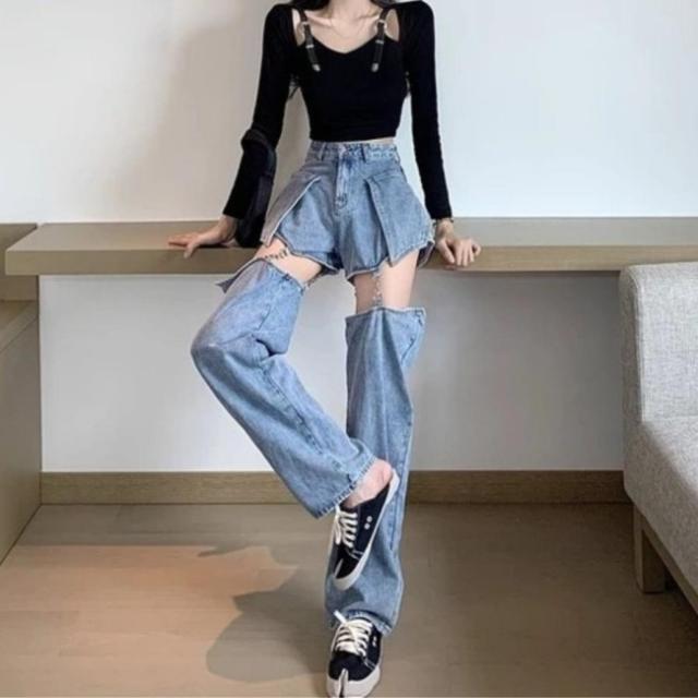 ロングパンツ デニムパンツ ショートパンツ カーゴ ワイド バギー レディース 韓国ファッション ストリート 大きいサイズ ゆったり セパレート 夏