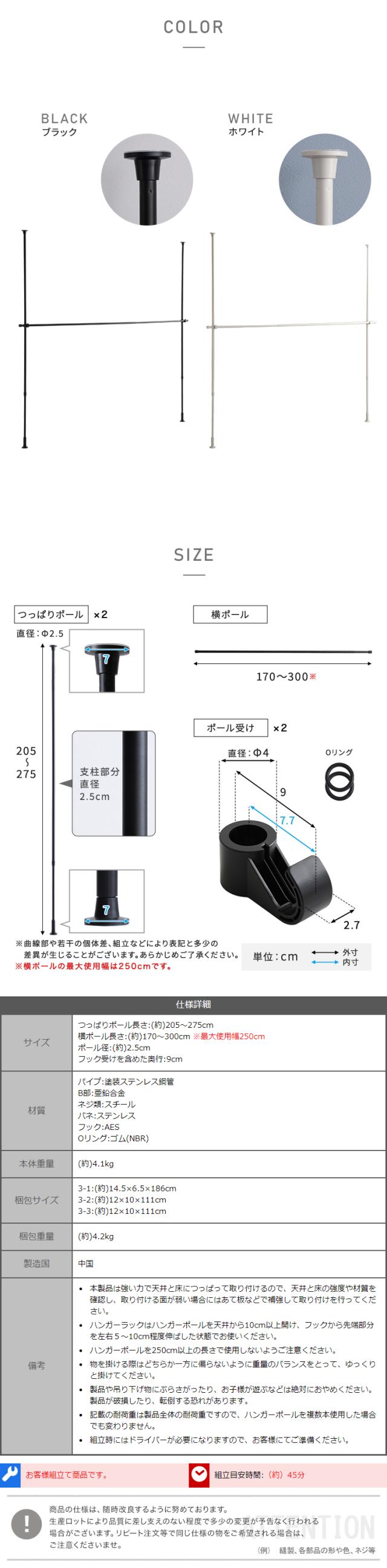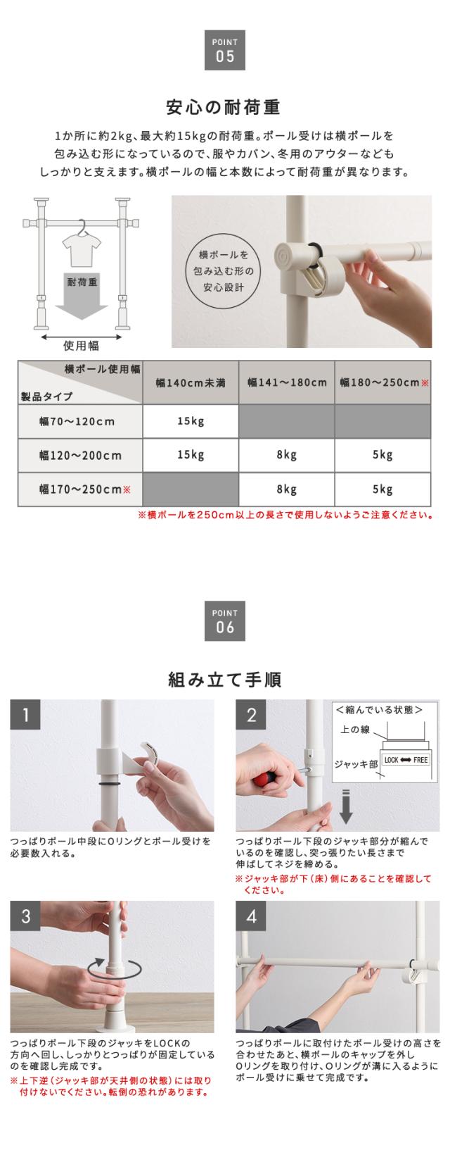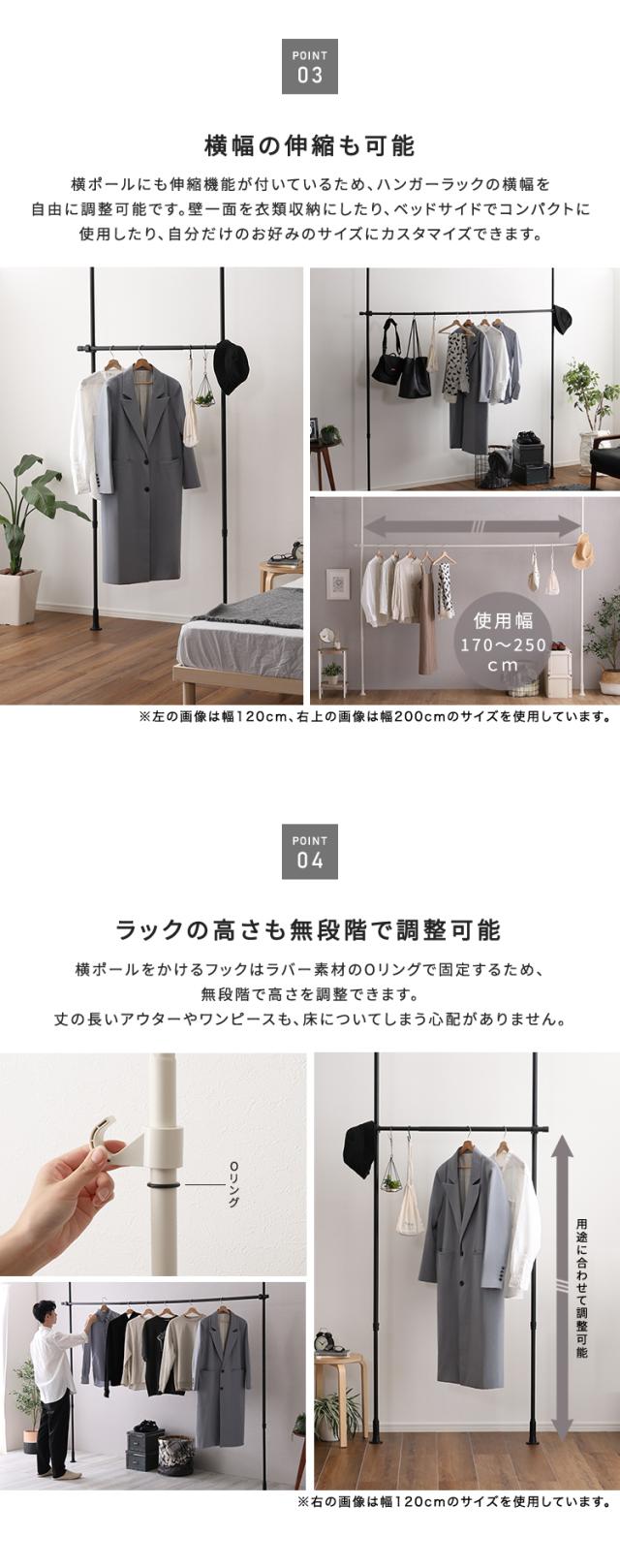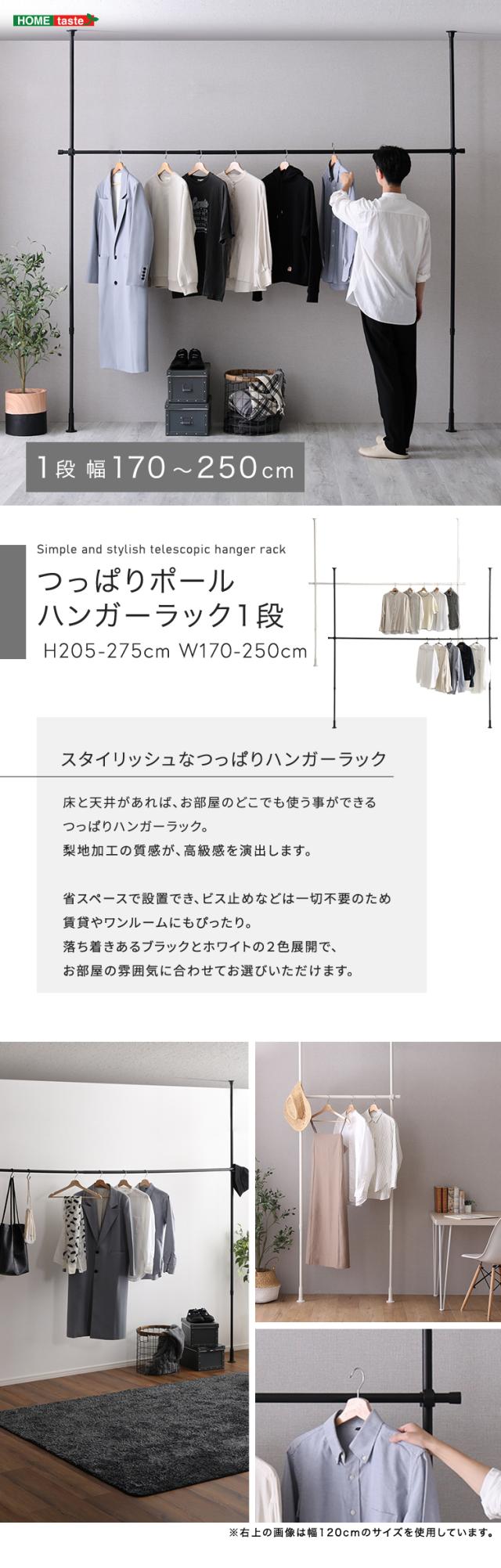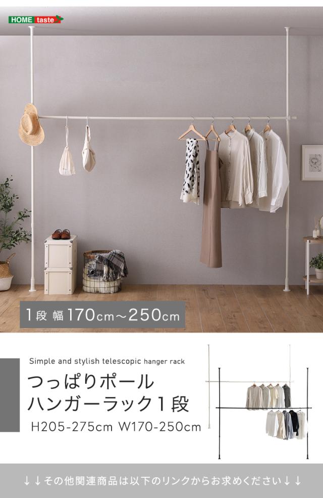 最大幅250cm 伸縮 つっぱりハンガー ワイド 1段 【送料無料】 天井 つっぱりポール 高さ調節 室内 シンプル 突っ張りハンガーラック 洗面所 リビング 玄関 耐荷重 クローゼット おしゃれ インテリア コートハンガー ハイタイプ 大容量