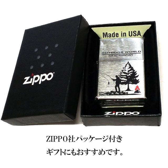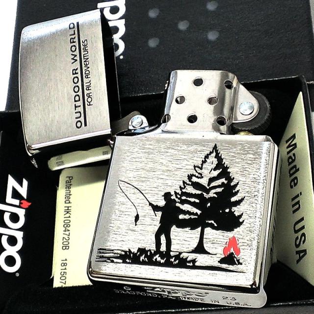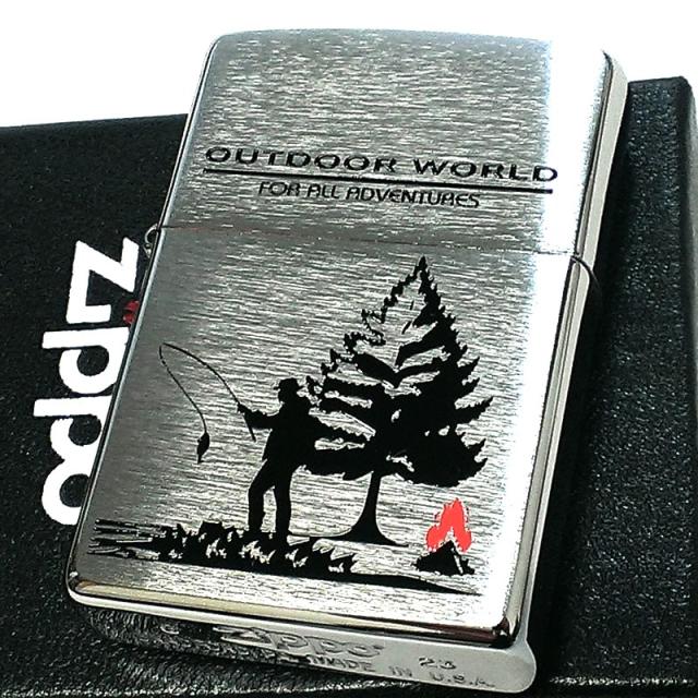 ZIPPO ライター 釣り アウトドアワールド ジッポ フィッシング シルバーサテン ユニーク おしゃれ ホビー レディース 可愛い