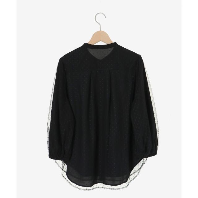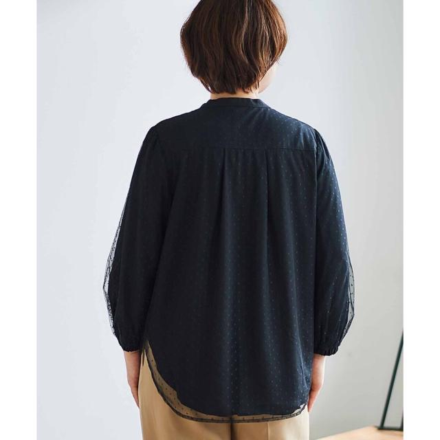 無地の生地の上にチュールドットの生地が重ねたレイヤーブラウス。