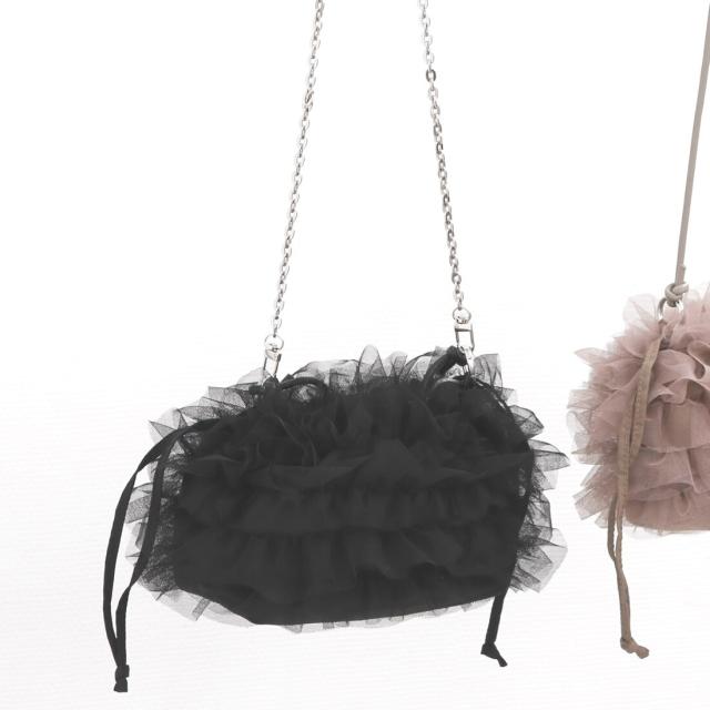 ボリュームのあるチュールフリルがトレンド感のあるミニショルダー。
