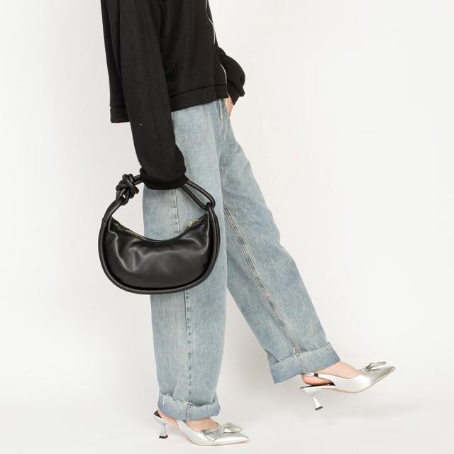 持ち手部分の結び目とコロンとした丸みのあるシルエットがポイント。