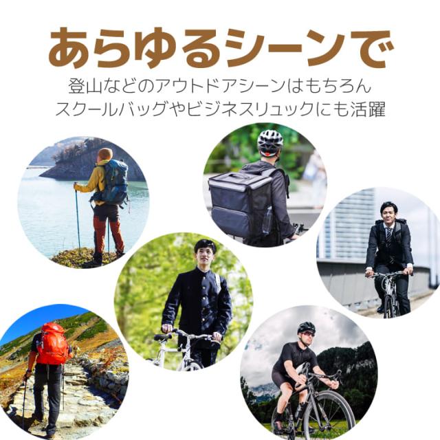 登山やハイキング、トレッキングといったアウトドアシーンはもちろん、ビジネスバッグやスクールバッグ、マザーバッグなど日常生活にもマッチします。