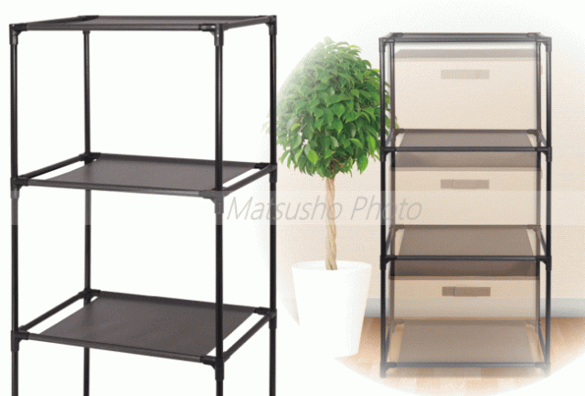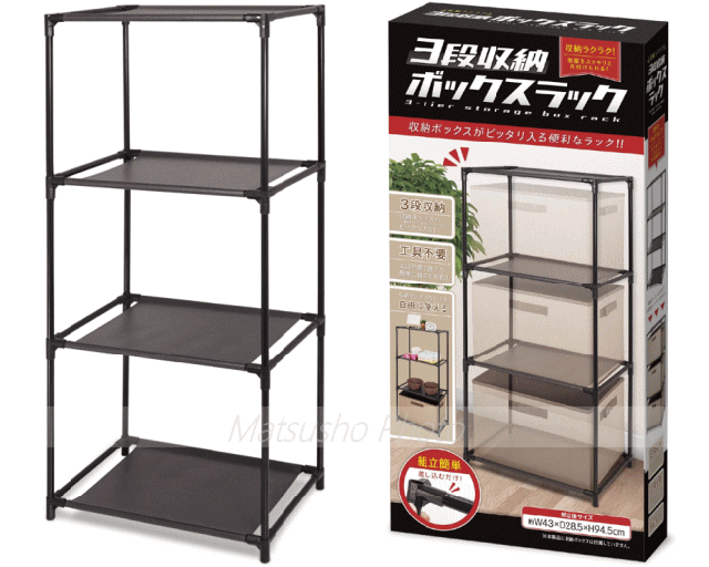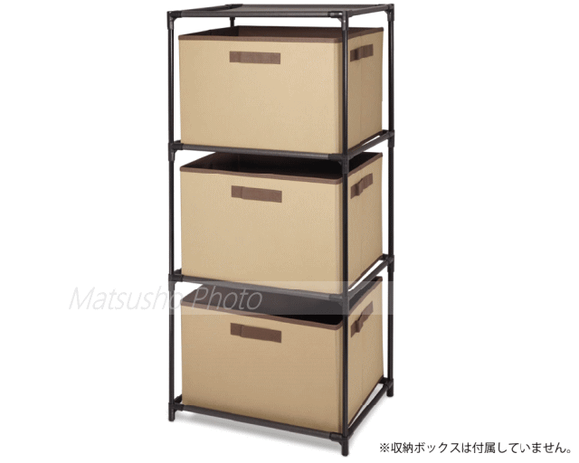 市販されている収納ボックスが収納可能な3段式収納ラック。パイプを繋げるだけなので工具不要、簡単に組み立てれます。お部屋のレイアウトに合わせて高さを2段式にも変更可能。タオルを置いたり小物を置いたり様々なインテリアに対応できます。■品番HAC3321■サイズ[組立時]約W43×D28.5×H94.5cm[箱]約W20×D5.5×H41cm■重量[本体]約720g[箱込]約885g■材質[パイプ]鉄[接続ブロック]PP[仕切シート]ポリエステル■カラー:ブラック■セット内容:25cmパイプ×8本、30cmパイプ×12本、40cmパイプ×8本、接続ブロック×16個、仕切シート×4枚※本製品は室内専用です。本製品に収納ボックスは付属していません。別途お買い求め下さい。収納ボックスのサイズによってはラック内に収納できない場合があります。(推奨収納ボックスサイズ:W38×D26×H26cm)重い物を載せすぎると破損する可能性がありますので注意して下さい。水洗いはしないで下さい。