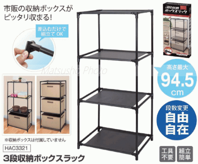 ハック ラック 収納ラック 3段 スチールラック 収納ボックスラック 棚 ラック 収納 組立簡単 HAC 3段収納ボックスラック 3321