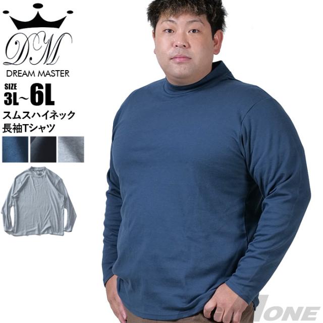 大きいサイズ メンズ DREAM MASTER スムス ハイネック 長袖 Tシャツ dm-t240421