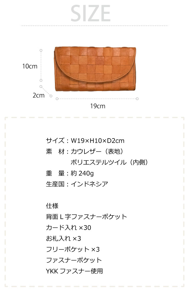 ![]() ![]() ![]() ![]() ![]() ![]() ![]() ![]() ![]() zucchero ズッケロ ナチュラルな風合いを大切にした大容量収納の長財布。素朴な匂いや革本来の色の濃淡が、使い込む程に味わい深く変化し、持つ人に馴染みます。 ひと目で本革とわかるナチュラルな風合いや、くったり柔らかく表情豊かになる本牛革ならではの経年変化をお楽しみ下さい。 飽きのこないベーシックなデザインで年齢問わず使いやすい仕様に。 収納スペースやカードポケットが豊富で大容量収納出来ます。 見た目の可愛さだけではなく、機能性にもこだわり仕上げました。 自分へのご褒美としてはもちろん、贈り物としても喜ばれる長財布です。